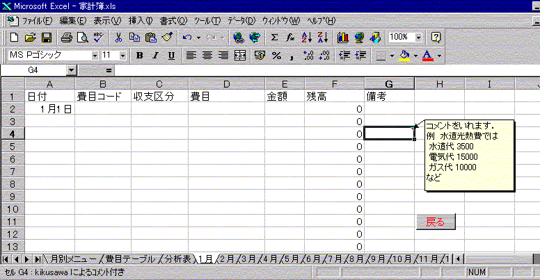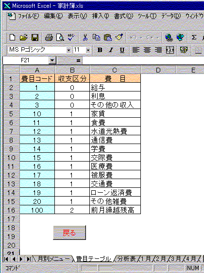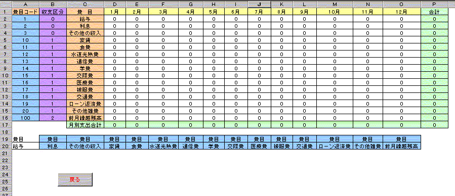に従って以下のような家計簿シート を作成しなさい.