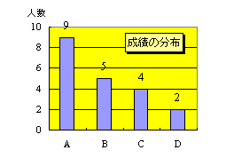 | 評価(A,B,C,D)ごとの人数と割合を別表にし,人数分布図を作る. |