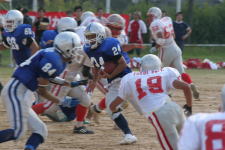 QBから渡されたボールを持って走り、タッチダウンを狙う。