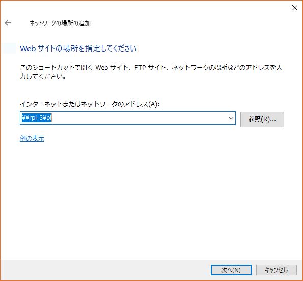 アドレスに「\\rpi-〇\pi」(〇はrpiの番号)を入力く