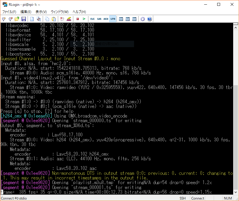 それをベースに、RLoginの機能を活用して、複数台のRpi-〇に同時に接続し、複数台に同時にbash streaming3を入力する、ということをしてやる。