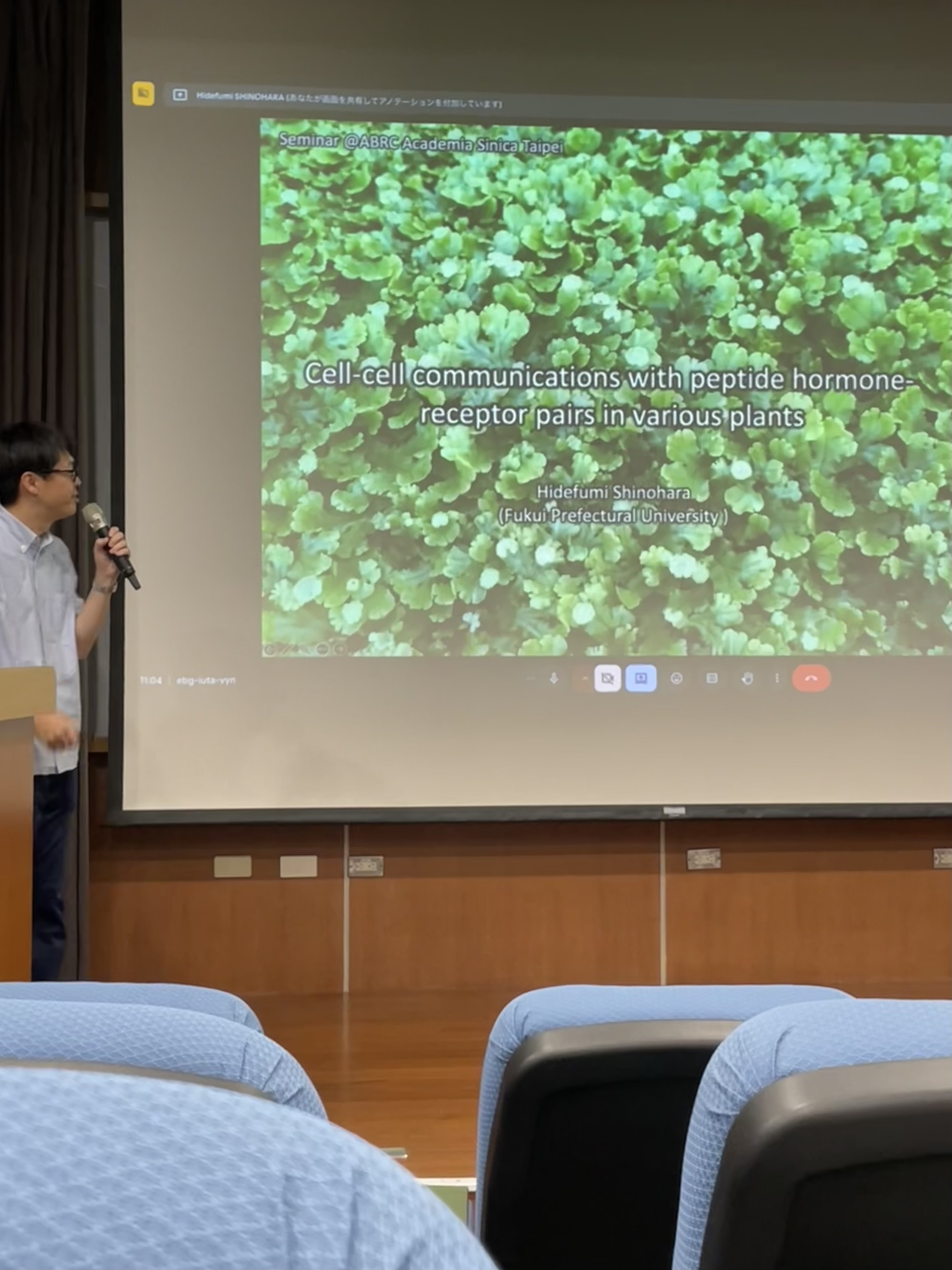 Academia SinicaのABRCのYet-Ran Chen博士にご招待いただき、植物のペプチドホルモンについて、これまでの研究紹介から最新の未発表データまでお話しました。多くの質問や助言をいただき、大変有意義でした。長時間の英語発表は(ほぼ?)初めてで、超緊張しました…。